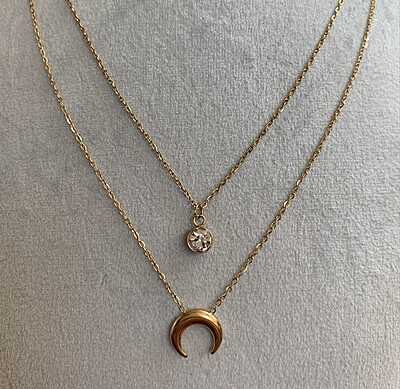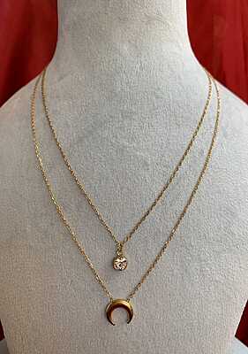A matching longer chain featuring a bold, polished crescent moon (horn) pendant.