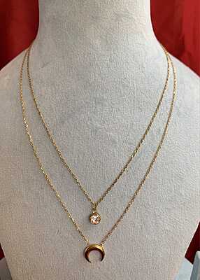 Gold-Tone Layered Necklace Set with Solitaire Crystal & Crescent Moon.